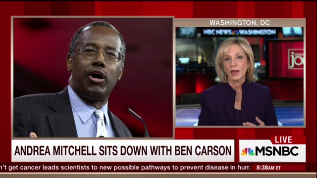JOE SCARBOROUGH: Let's bring in right now from Washington, NBC's chief foreign affairs correspondent and host of Andrea Mitchell Reports, Andrea Mitchell. Andrea, tell us about your interview with Ben Carson.