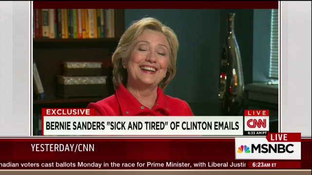 JAKE TAPPER: Bernie Sanders said that "the American people are sick and tired of hearing about your damn emails." [Hillary begins laughing].