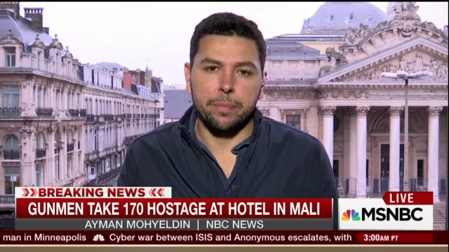 JOE SCARBOROUGH: The U.S. Embassy in Mali has confirmed it is aware of an ongoing active shooter operation in the city. And according to the APA, Malian army commander says about 20 hostages have already been released. Let's go right now to NBC News correspondent Ayman Mohyeldin live in Brussels. He's, of course, been following the latest developments there very closely. But also the latest developments in Mali. Obviously, Ayman, this has been a war-torn country for some time. A heavy French presence especially after you had the Islamists take over the country a few years ago in 2013. What can you tell us about the country and why we're seeing yet another massive terror operation there this morning?
