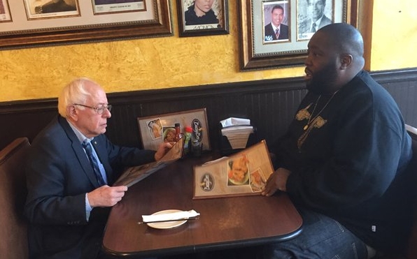 In a bid to pump up his anemic African-American support, Bernie Sanders very publicly chowed down yesterday with rapper Killer Mike, who at a subsequent rally endorsed Sanders. Reporting on the meeting of the unlikely duo, the Washington Post wrote that among other things they discussed "their mutual appreciation for the work of the philosopher Noam Chomsky."