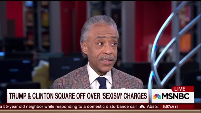 Sharpton's comments came in the context of a discussion of Hillary having accused Trump of "a penchant for sexism" and Trump using the same term to fire back, warning Hillary that she "has to be careful."