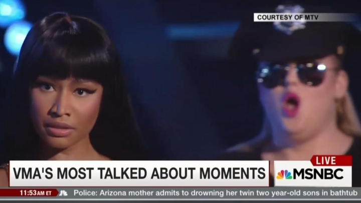 Earlier today we used a poor choice of words in describing Nicki Minaj's VMA acceptance speech. We apologize to Ms. Minaj and our readers.