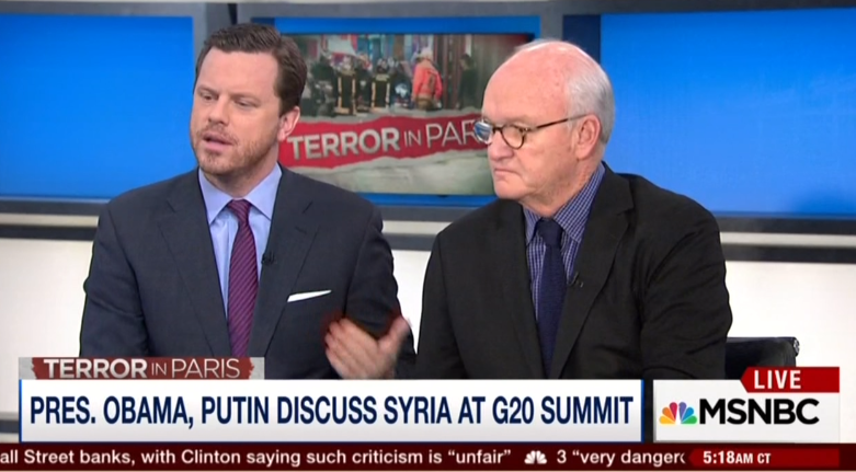 Barnicle tried to portray how Russia and the President were working on an arrangement to remove Assad sooner now from power. But as Willie Geist addressed the issue, “Well, if that, if what Mike is saying is true, it's not clear to me how Assad leaving changes things immediately. I mean Syria becomes more chaotic, perhaps for a while, and Syria becomes a launching pad.” And on the issue of the French air strikes that were carried out after the Paris attack, “The air strikes that we saw from the French yesterday, they went through great lengths showing the planes taking off, and all that. I guess that emotionally feels good, but those are air strikes the United States have been carrying out for months now. “Even Mika Brzezinski agreed that they “were symbolic, nothing more.”