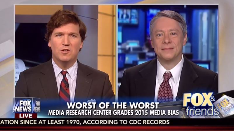 On Saturday morning, MRC Research Director Rich Noyes joined co-host Tucker Carlson on the Fox News Channel’s Fox & Friends to highlight a few winners from the MRC's “Best Notable Quotables of 2015, the Twenty-Eighth Annual Awards for the Year’s Worst Reporting,” which we’ve dubbed the “Worst of the Worst,” including overall winner MSNBC’s Melissa Harris-Perry for her diatribe about the term “hard worker” having racist connotations. (NewsBusters posts about the award-winning quotes of the year.)
