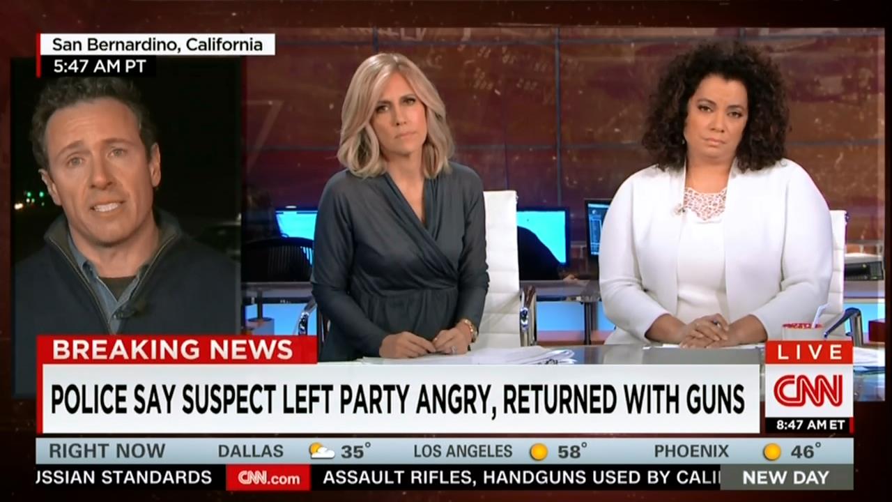 That's what Chris Cuomo did shortly after 8:30 (Eastern time) on CNN's morning news coverage, with regard to the San Bernardino shooting. Apparently sensing other hosts searching for non-religious motives, Cuomo cut in: