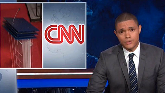 During Monday evening's edition of The Daily Show on the Comedy Central cable network, new host Trevor Noah mocked the efforts by the Cable News Network not only to promote the first Democratic debate in the 2016 presidential contest on Tuesday, but also to add another participant to the event: vice president Joe Biden.