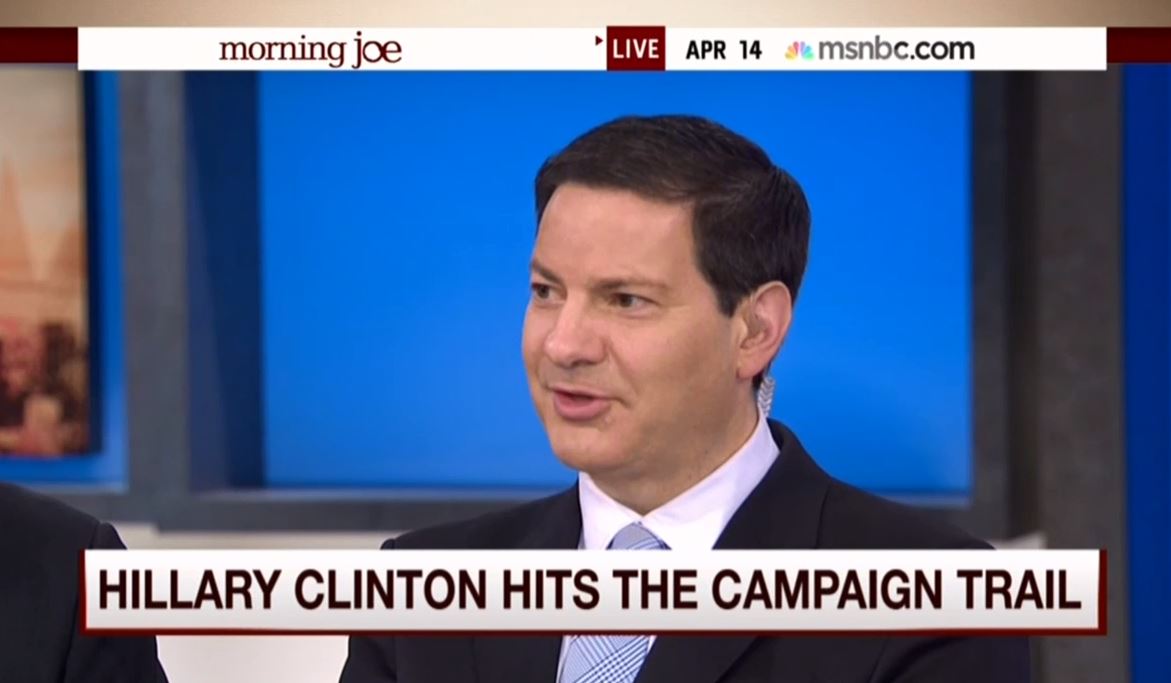 Winning this category was longtime MSNBC political analyst Mark Halperin, a veteran of ABC News and Time magazine, and currently the co-host of Bloomberg’s daily politics show, With All Due Respect. Halperin was on MSNBC’s Morning Joe back on April 14, opining on how Hillary’s candidacy would be affected by her stop during a road trip to buy a burrito at Chipotle: