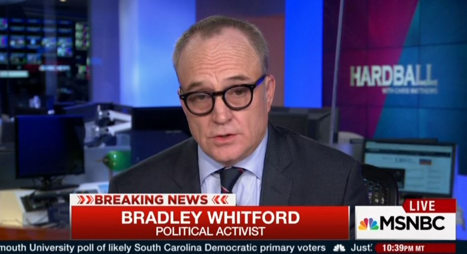 Liberal West Wing actor Bradley Whitford appeared on a special post-debate edition of Hardball, Tuesday, to trash the Republican candidates. However, he singled out one person for praise, cheering, “[John] Kasich was certainly agitated and seemed to try and, you know, bring the clown car under control, I thought.”