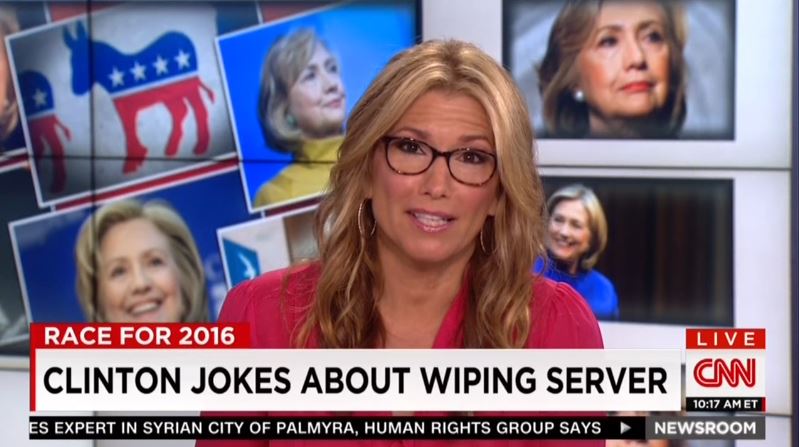 During a segment on her CNN show this morning, Carol Costello and Mashable’s Christina Warren had a good laugh over Hillary Clinton’s response to Fox News correspondent Ed Henry’s question concerning whether or not she wiped the content on her digital e-mail servers. When asked “Did you wipe the servers?” the Democratic hopeful responded with “What? Like with a cloth or something?”