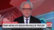 CNN's Wolf Blitzer thrice claimed on his early afternoon program on Thursday that diplomatic relations between the United States and Mexico had entered a "crisis", due to Mexican President Enrique Peña Nieto cancelling his upcoming meeting with U.S. President Donald Trump. Blitzer trumpeted "the breaking news: a major diplomatic rift — a crisis, I dare say — between the United States and Mexico." He later stated that "it sounds like that crisis in U.S.-Mexican relations is going to continue," and emphasized that "clearly, this crisis not going away."
