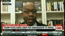 On Sunday's New Day on CNN, during a discussion of Donald Trump's choice of David Friedman as ambassador to Israel, and his stated support for relocating the U.S. embassy from Tel Aviv to Israel's capital of Jerusalem, CNN political commentator Errol Louis worried that such a move would be equivalent to "giving" Jerusalem to Israel because the Palestinian Authority has expressed a desire to place the capital of a Palestinian state in Jerusalem.