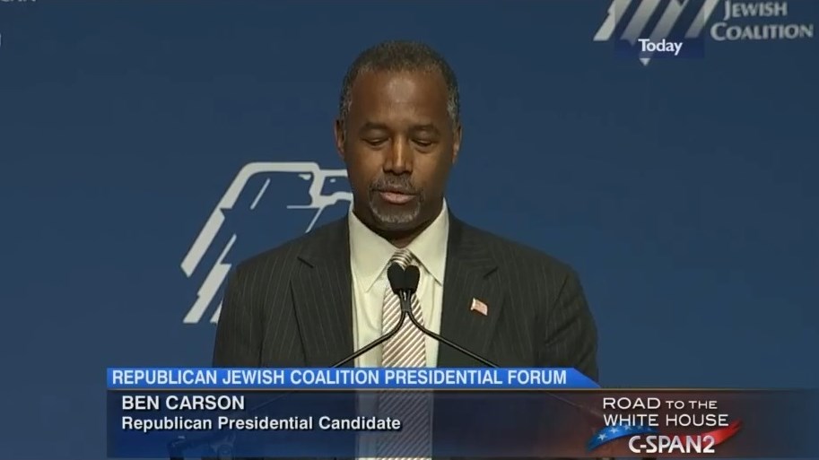 ROBERT SIEGEL: Ben Carson appears to be dropping in the polls. And he didn't help himself yesterday at a meeting of the Republican Jewish Coalition. In his description of the two major Palestinian factions, Dr. Carson pronounced Hamas in such a way as to suggest hummus, a Middle Eastern chickpea mash.