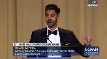 Both The Washington Post and Twitchy drew attention to the jokey disagreement between White House Correspondents Association president Jeff Mason of Reuters and his hired Trump-ripper of the night, Hasan Minhaj of The Daily Show. "I was explicitly told not to go after the administration," Minhaj said. "You were not told that," Mason said. Clearly, you don't set a no-Trump-bashing standard and hire a leftist hack with a Muslim background from Comedy Central.