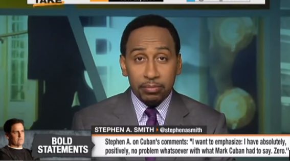 ESPN analyst and reporter Stephen A. Smith, apparently in reaction to seeing anyone who dares to say the words "all lives matter" in succession getting mercilessly attacked, pushed back hard today against the censorship and intimidation of the "Black Lives Matter" crowd in three tweets. The first: "Where is all the noise about #BlackLivesMatter when black folks are killing black folks?" The second: "There's nothing wrong when a presidential candidate says 'All lives Matter'!" The third: "I'm a black man. Of course I know #BlackLivesMatter. You can't boo a presidential candidate just b/c he says 'all lives matter'."