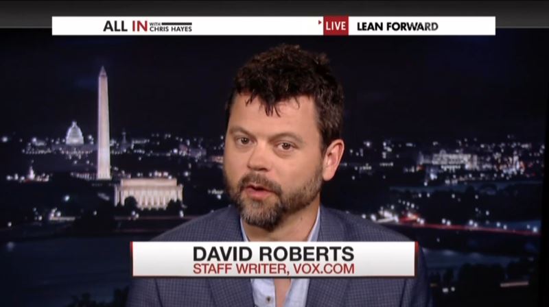 A year ago, Roberts, then with the environmentalist magazine Grist, tweeted a series of thirty-six thoughts about modern conservatism. His main argument was that “nihilistic” right-wingers had undermined the idea of objective reality because they wanted “every dispute, even over matters of fact, [to] become…a contest of power — loudest, best funded, most persistent voices win.”