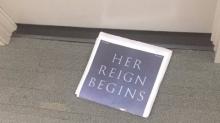 We noticed the unintentional joke when The New York Times arrived today at headquarters. Lachlan Markay at the Washington Free Beacon noticed, too. The Times came wrapped in a suggestive ad with the large boast in all capitals: “HER REIGN BEGINS.”