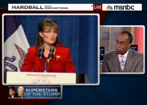 CHRIS MATTHEWS, HOST: Now, Sarah Palin, we have seen across-the-board nationally. She`s got low numbers in the 30s. But you put her in the Republican Party, she is in the 70s. The question is: look at this, she`s going to two rallies in California this Saturday and Florida the following Saturday. She`s sort of doing the weekends. I guess Roger Ailes lets her off for the weekend from FOX.