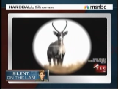Readers are advised that as Matthews was saying this, a "Sarah Palin's Alaska" clip was being shown of the former governor about to shoot a caribou. Rather ominously, just as the host said "erased as a potential candidate," the picture on the screen was the caribou in Palin's gun sight.