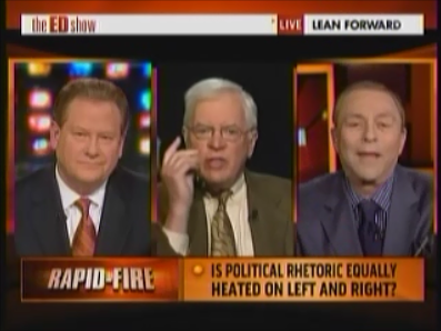 ED SCHULTZ, HOST: Now let’s get rapid-fire response from our panel on these stories. I want to get their thoughts on extreme political rhetoric in this country. What is the responsibility of the politicians, the left and the right? Are they equally to blame? With us tonight, Bill Press, nationally syndicated radio talk show host. And Tony Blankley, syndicated conservative columnist. Great to have both of you with us.