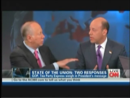 On "Anderson Cooper 360" following the President's State of the Union address, former Bush press secretary Ari Fleischer did his darnedest to explain to the CNN senior political analyst that our mammoth budget deficits should first be brought under control before any additional outlays are considered (video follows with transcript and commentary):