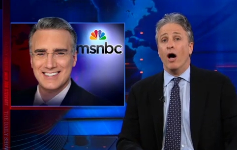 JON STEWART: You know, it’s been over a week since Keith Olbermann and MSNBC parted ways leaving an Olbermann-shaped hole in our national discourse. Who on their network will step into the breach we find out in our new segment, “Olbertunity Knocks.”