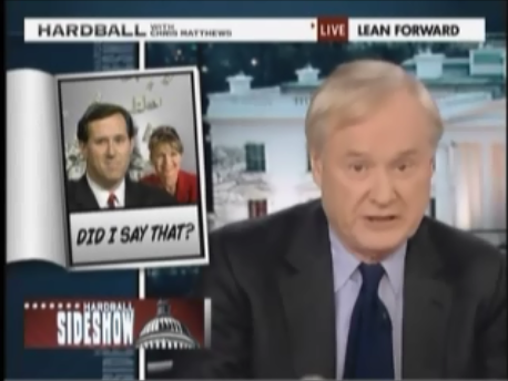 Not surprisingly, by presenting only his biased and abbreviated side of the story, the "Hardball" host attacked both Palin and Santorum (video follows with transcript and commentary):