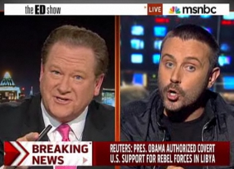 Not only did MSNBC's Ed Schultz express his support for this action as well as arming these rebels, he also got into a heated argument with a Nation magazine reporter that compared this operation to the "disastrous dirty wars of the 1980s" bringing up images of Ollie North and the Iran-Contra scandal (video follows with transcript and commentary):