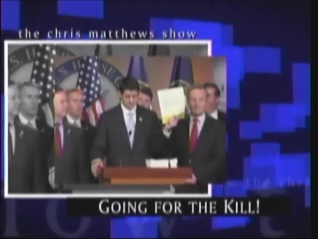 CHRIS MATTHEWS: Going for the kill! This week's shutdown fight is just the beginning. The young Republican turks want to fight to the death! They just don't want cuts in programs like Medicare, birth control, the environment, but the end of them. It isn't about reform, it's about repeal. It isn’t about 2011, it’s about 2012.