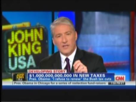 First off, who is John King to say that raising taxes at this moment is "for the good of the country?"