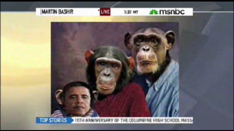 This became obvious to Breitbart after Bashir asked his opinion of a truly offensive picture of Barack Obama leading Breitbart to fire back, "You're trying to insinuate that I'm a racist here, which is what MSNBC does to conservatives every single day" (video follows with commentary and full transcript at end of post):