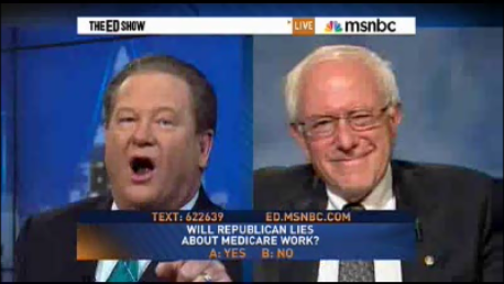 ED SCHULTZ: Joining me now, my favorite Senator, independent from Vermont, Bernie Sanders. I've never said you were my favorite Senator on this program before or when I was doing the six o’clock, but you are, and I want to announce that tonight. You are my favorite Senator because you stand up to what is wrong with this country and you always have a solution on what we need to do to make things better for the middle class, and I respect that, Senator.