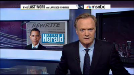 LAWRENCE O’DONNELL: In "The Rewrite" tonight, Boston’s conservative-leaning newspaper the Boston Herald is accusing the White House of playing favorites with the local media. The President is in Boston for fund-raising events today and tonight and the Herald says its reporters were not given full access because of an op-ed written by Mitt Romney that the Herald published on its front page back in March. That op-ed entitled “Obama Misery Index hits a Record High” ran on the same day President Obama was in Boston for a previous fund-raiser.