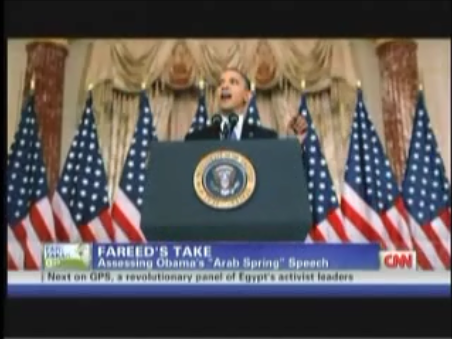 Obama outlined specific policies to help the Arab revolutions get consolidated. All good stuff. And he also talked about the need for a resolution of the Israeli-Palestinian conflict, two states based on 1967 borders, with land swaps that both parties agreed to, and the Palestinian partner that renounced terror -- a blow at Hamas.
