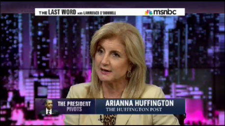On Wednesday, AOL Huffington Post editor-in-chief Arianna Huffington told MSNBC's Lawrence O'Donnell that nobody believes the President's top priority is jobs - it's getting reelected (video follows with transcript and commentary):
