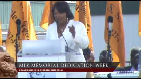 BERNICE KING: But as I close, I close with the recognition that daddy is standing, Lincoln is seated. Lincoln remembered for signing the Declaration of Independence. Daddy being remembered as standing up for truth and standing up for justice and standing up for righteousness and standing up for peace and standing up for freedom. Daddy is now standing on the National Mall in our nation’s capital.