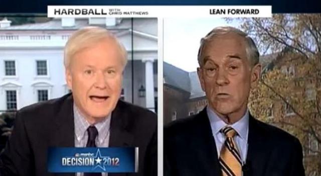 On Tuesday, Chris Matthews wrongly accused Republican presidential candidate Ron Paul of saying during the previous evening's debate he would let a critically ill person die if the patient didn't have health insurance (video follows with transcript and commentary, file photo):