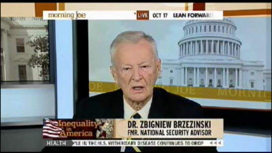 BRZEZINSKI: But unfortunately, there is an even larger number of people who massively enrich themselves over the last decade, incredibly so, to the degree that we now have this highly disproportionate social divisions between the rich and the poor. And I think they should be made known publicly. Public pressure, public condemnation, public shame can be very effective…I think public disclosure by the mass media could go a long way towards a social awakening that's responsible and constructive in its effects and doesn't produce stupid counterproductive witch hunt.