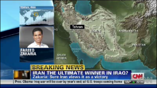 FAREED ZAKARIA: Oh, I'm sure it views it as a victory. Iran views what had happened in Iraq entirely from a kind of geopolitical prism. That is the U.S. and Iran are competing for influence in Iraq. They have viewed it that way from the start of the fall of the regime and they have their agents in there and Iran has long ties to many of threat groups that are now dominant in Iraq.