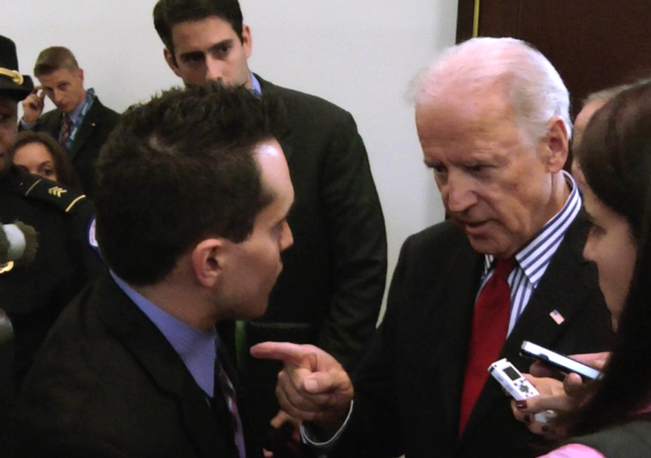 Jason Mattera, who works for Human Events, a conservative magazine, used a pretext to catch Biden off guard in a Senate hallway and grill him on claims the vice president has made about jobs legislation.