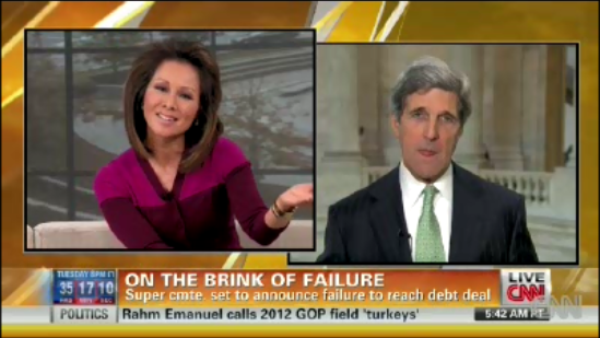 While discussing the Super Committee's failure on American Morning, Cho oddly said to her guest, "Just yesterday on Meet the Press you said there were things you agreed to that you didn't want to talk about public, which sounded very sexy I might add" (video follows with transcript and commentary):