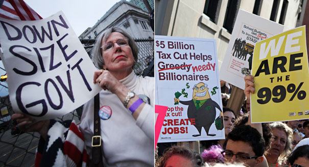 Tea Party organizations and rallies were initially ignored by the press and then dismissed as radical zealots as the Occupy Wall Street crowd was immediately recognized as leading the voice of “the 99%.”