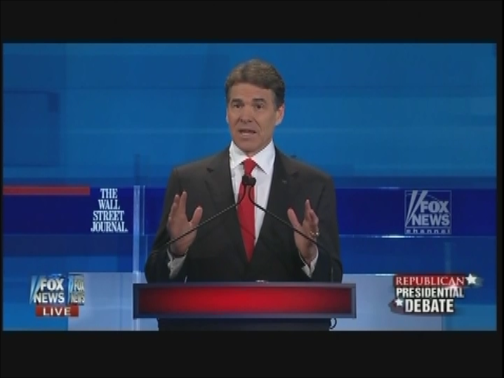 RICK PERRY: The first thing we need to do in this country is cut the tax rate down to where the people feel confident that they can risk their capital and have a return on their investment. That’s the reason I laid out a simple and flat tax of 20 percent with their home mortgage deduction and charitable expenses and local taxes. Get rid of capital gains taxes, get rid of the benefits tax, get rid of the tax on Social Security benefits, and then take 20 percent of that and mail your check in. I mean, even Timothy Geithner could get his taxes in on time with that type of a system.