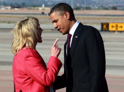 The discussion began with Maher showing the now infamous picture of Brewer pointing at Obama.