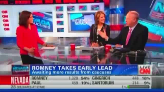 During the network's coverage of the Nevada caucuses, contributor David Gergen practically blushed when seeing O'Brien - "Love having you on the set here tonight" - as he told her, "You’ve been really much in the news. You’ve been sort of driving the conversation" (video follows with transcript and commentary):