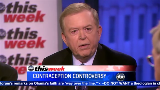 As the conversation ensued, substitute host Jake Tapper referred to "the contraception debate" before asking George Will if he’s concerned with Rick Santorum falling “into the trap of making this about contraception, which is not necessarily a winning issue for Republicans, as opposed to making it a debate about religious liberties.”