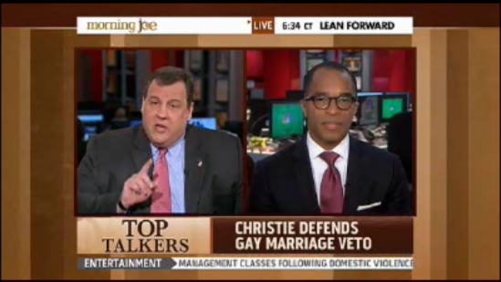 New Jersey Governor Chris Christie and the Washington Post's Jonathan Capehart got into quite a heated debate about same sex marriage on MSNBC's Morning Joe Thursday.
