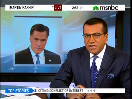 MARTIN BASHIR: Now consider this: the Romneys attacked Hilary Rosen because she had failed to include the words “outside of the home” when she said Ann Romney had never worked a day in her life. Hilary Rosen, who doesn’t work for the president and is an independent commentator, admitted that it was a mistake and has apologized.