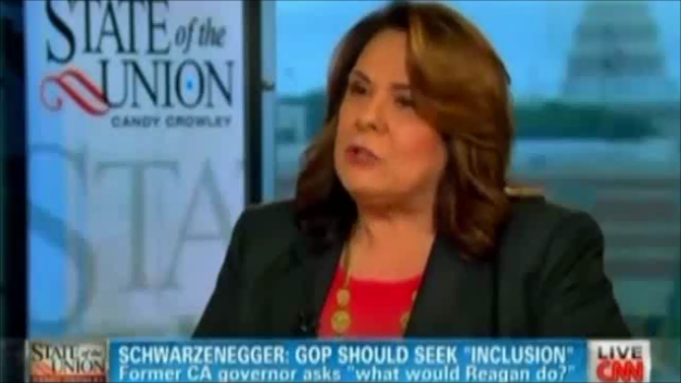 Towards the end of her interview with the former Speaker, Crowley brought up an op-ed in Sunday’s Los Angeles Times by Arnold Schwarzenegger wherein he complained about the Republican Party not accepting “liberal activists.”