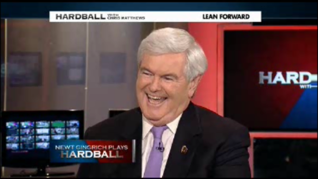 Former Speaker of the House Newt Gingrich told MSNBC's Chris Matthews Thursday, "You have a more ruthless approach to politics than I do."