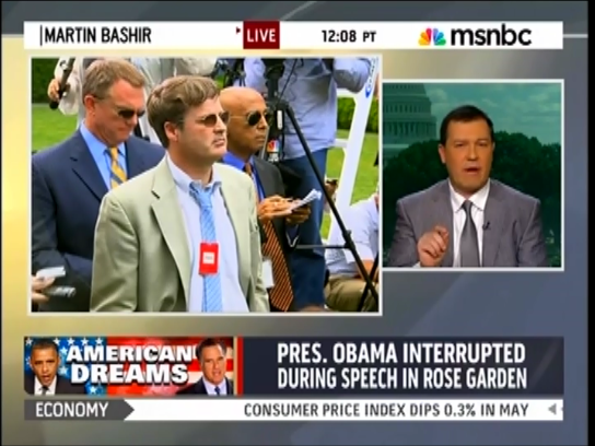 As this was addressed on the Martin Bashir show shortly after it happened, Democratic strategist turned MSNBC contributor Julian Epstein said, "Jonathan and Joy-Ann are not saying something because I think they’re being politic here, but, it, this is just so unprecedented and so outrageous that you have to ask the question: would the rightwing be doing this if we had a white president there? The fact that the first African-American president…”
